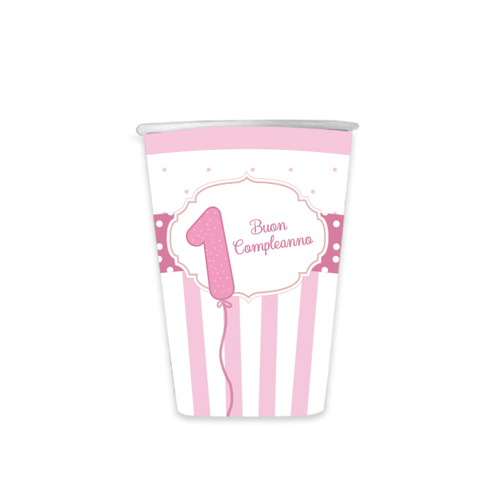 8 Bicchieri 200 cc Buon Primo Compleanno Rosa
