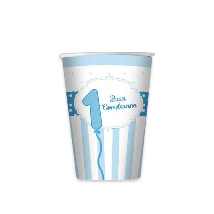 8 Bicchieri 200 cc Buon Primo Compleanno Celeste