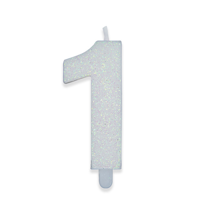 Candelina Sweety Bianco Glitter 9 cm Numero 1