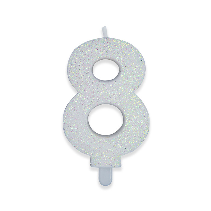 Candelina Sweety Bianco Glitter 9 cm Numero 8