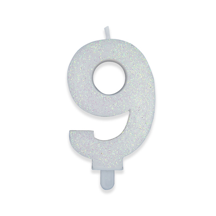 Candelina Sweety Bianco Glitter 9 cm Numero 9