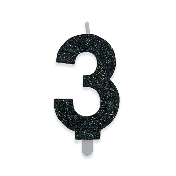 Candelina Sweety Nero Glitter 9 cm Numero 3