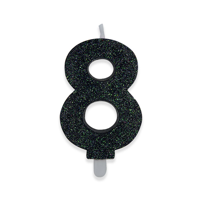 Candelina Sweety Nero Glitter 9 cm Numero 8